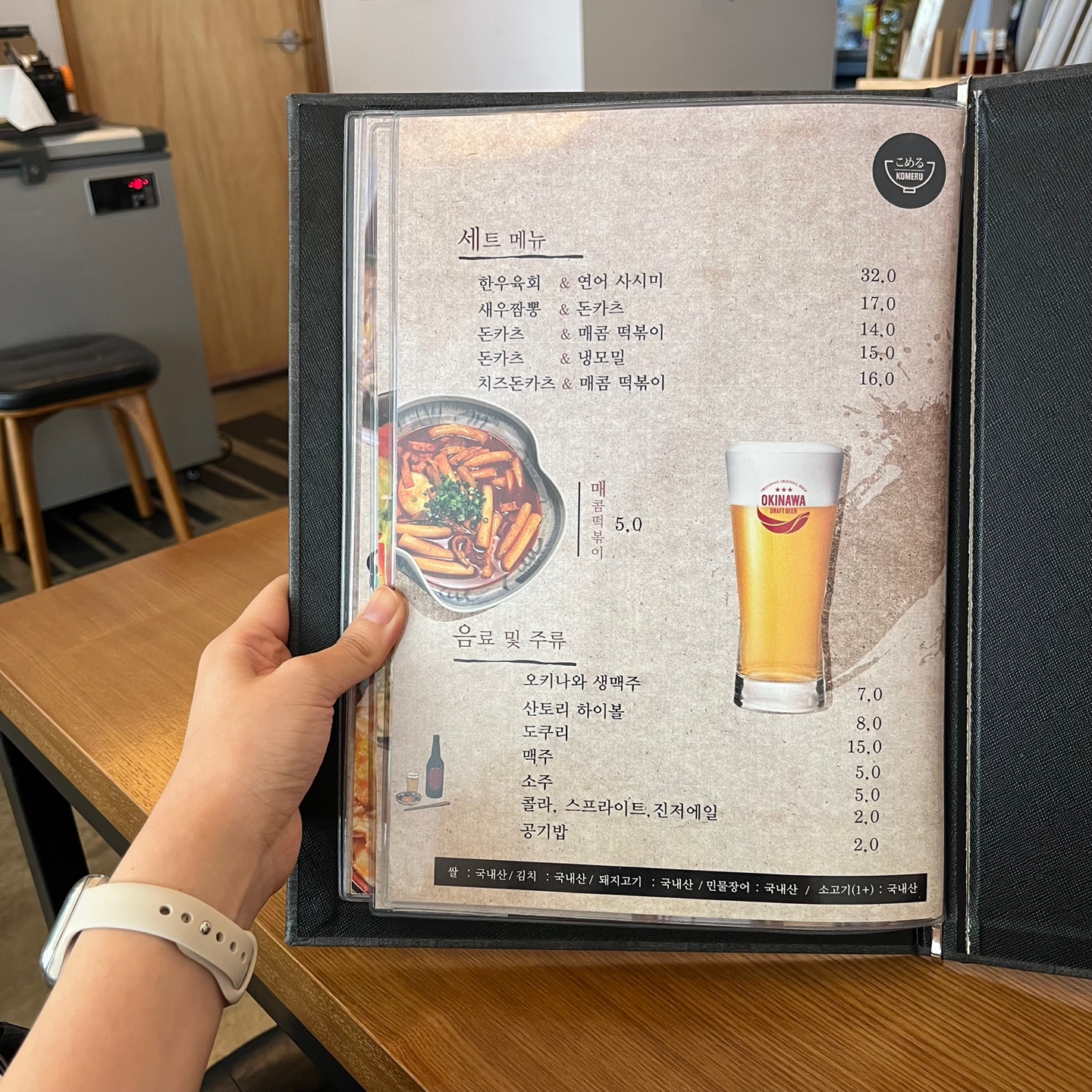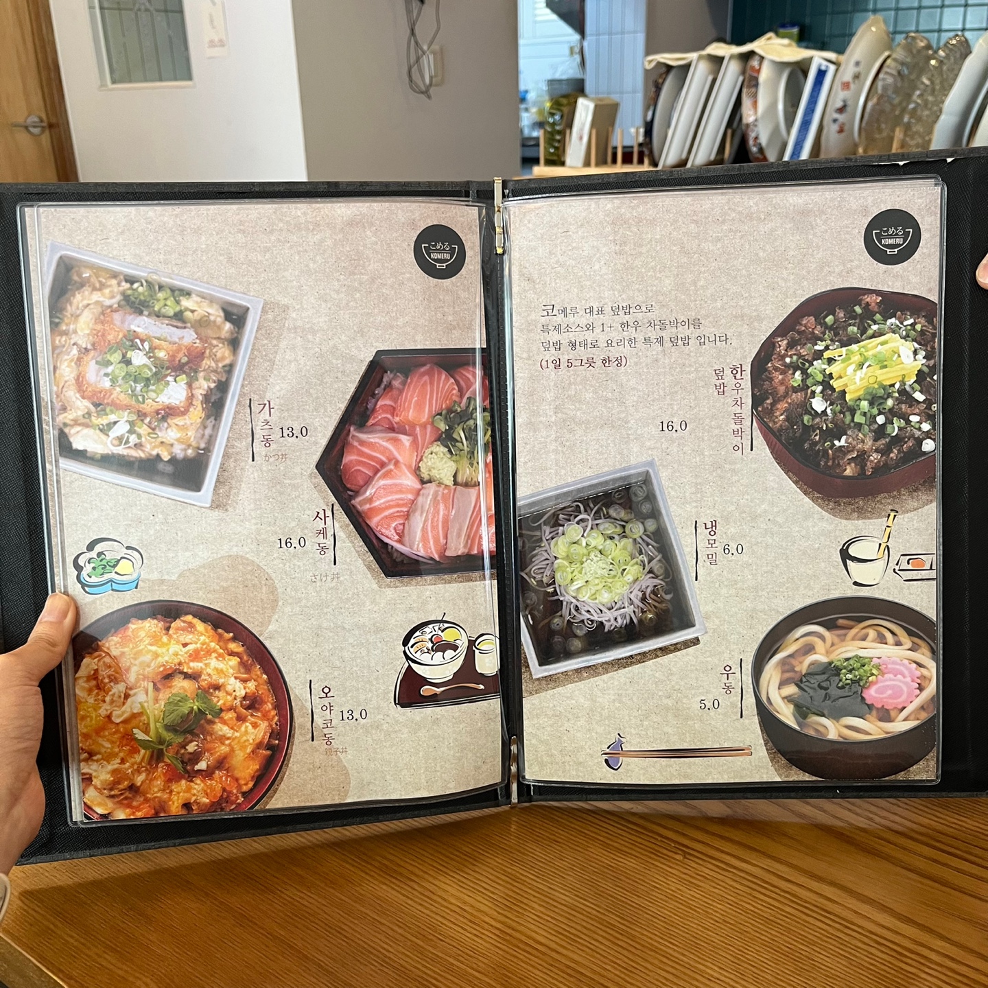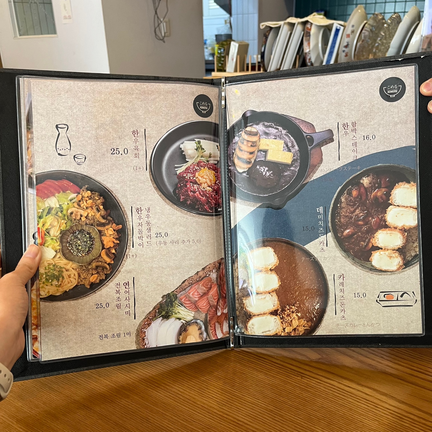 코메루에는 꽤 다양한 메뉴들이 많았습니다. 장어덮밥부터 돈가스, 카레와 여러 가지 덮밥은 물론이고 술과 곁들일 수 있는 한우육회, 한우 차돌박이 냉우동 샐러드, 사시미 같은 안주류도 많았습니다.